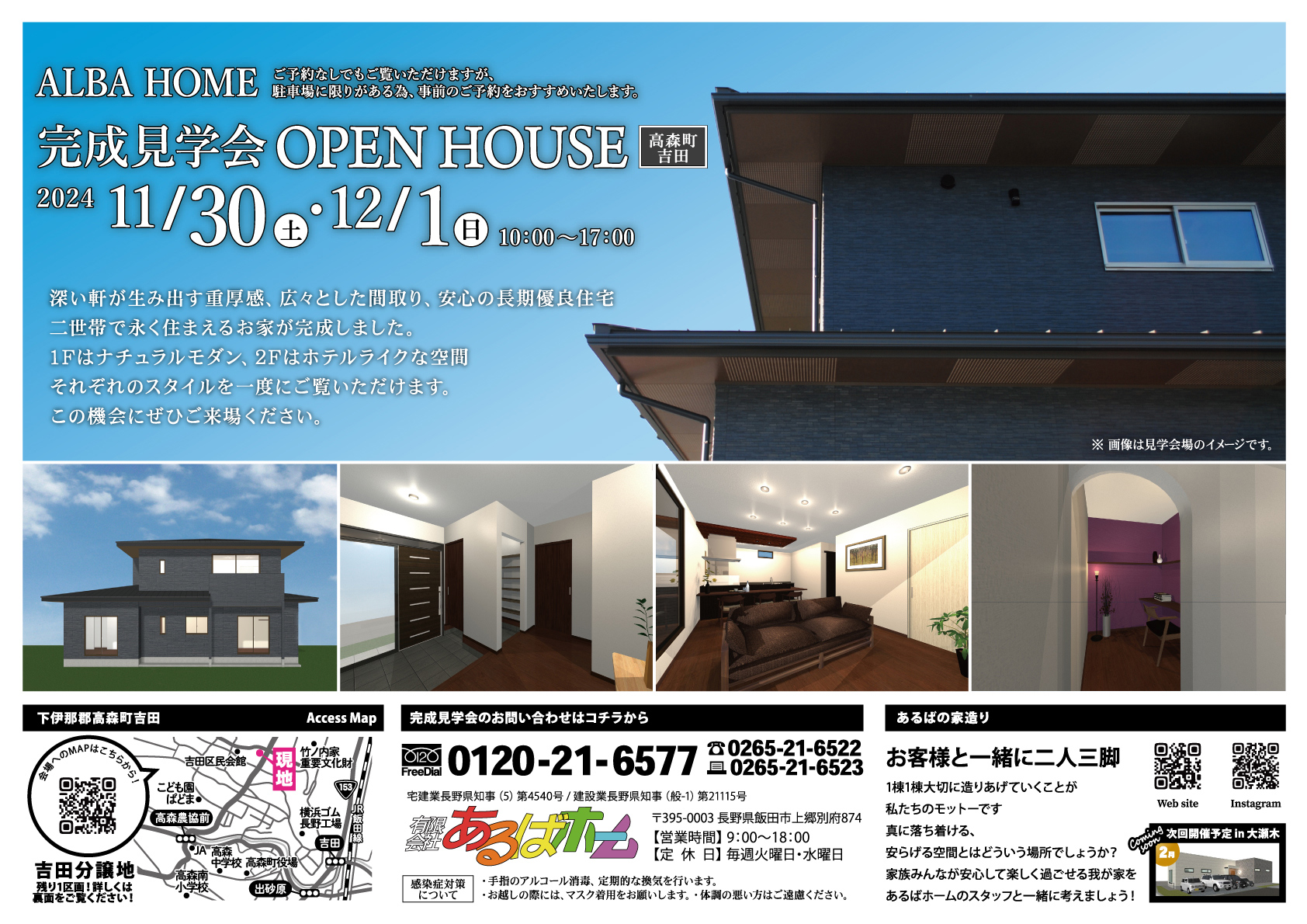 ※ 「完全予約制」となります。お問い合わせ・見学会のご予約は、お電話にてお願いいたします。
