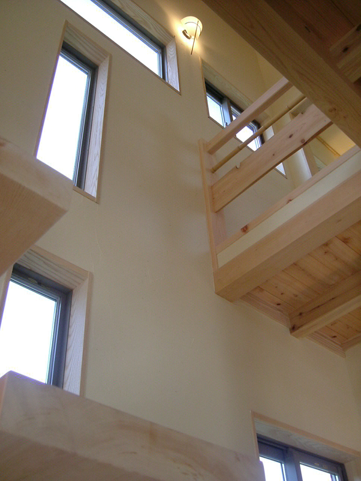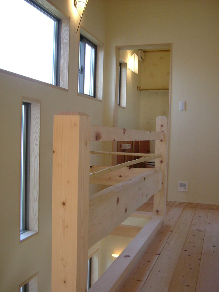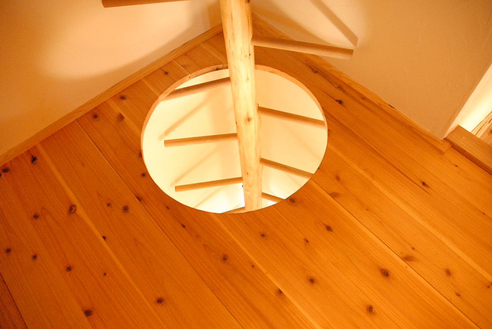 お子様の夢をかきたてる丸い木の登り棒。ロフト入口も丸く切りとりました。木の優しさが伝わります。
