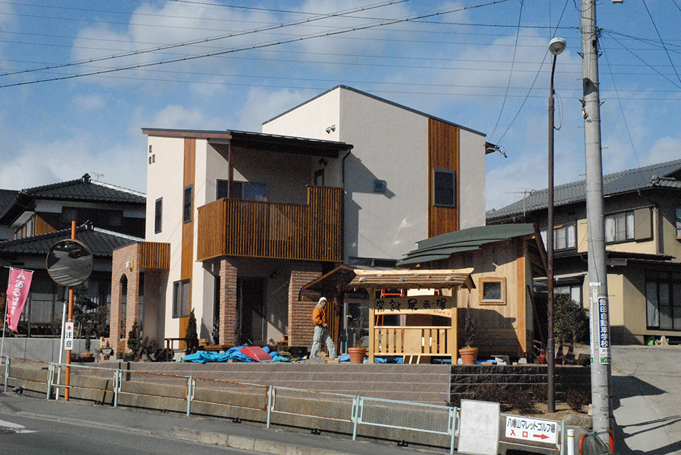 家族みんなの健康と住みやすさを考えて「自然素材」にこだわり「檜・杉・竹・欅」などの自然素材をふんだんに使用し、柱は全て銘柄材の無垢の「木曾東濃檜」を使用しました。自然に抱かれている様なとても気持ちの良い空間です!下駄箱は無垢の杉の木、キッチンは基礎檜を使用、木の香りと手作りの温かみが素敵です。「床暖房」が木の床にぬくもりを与え家全体をじんわりと温めてくれます!空気の熱でお湯を沸かす、省エネ給湯機、「エコキュート」を設置しました。